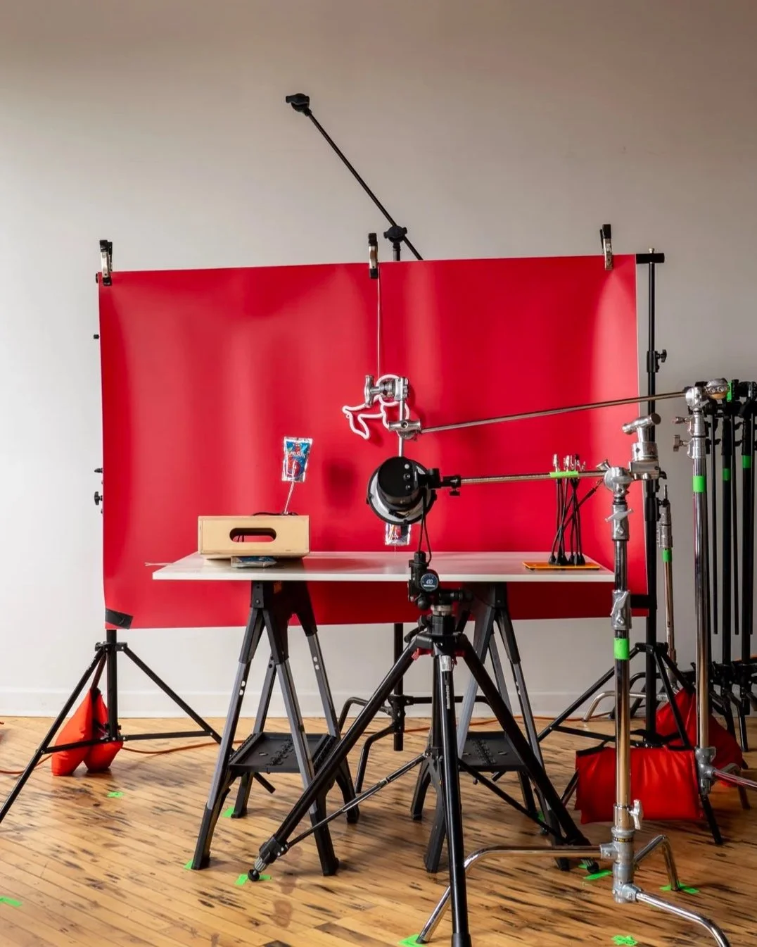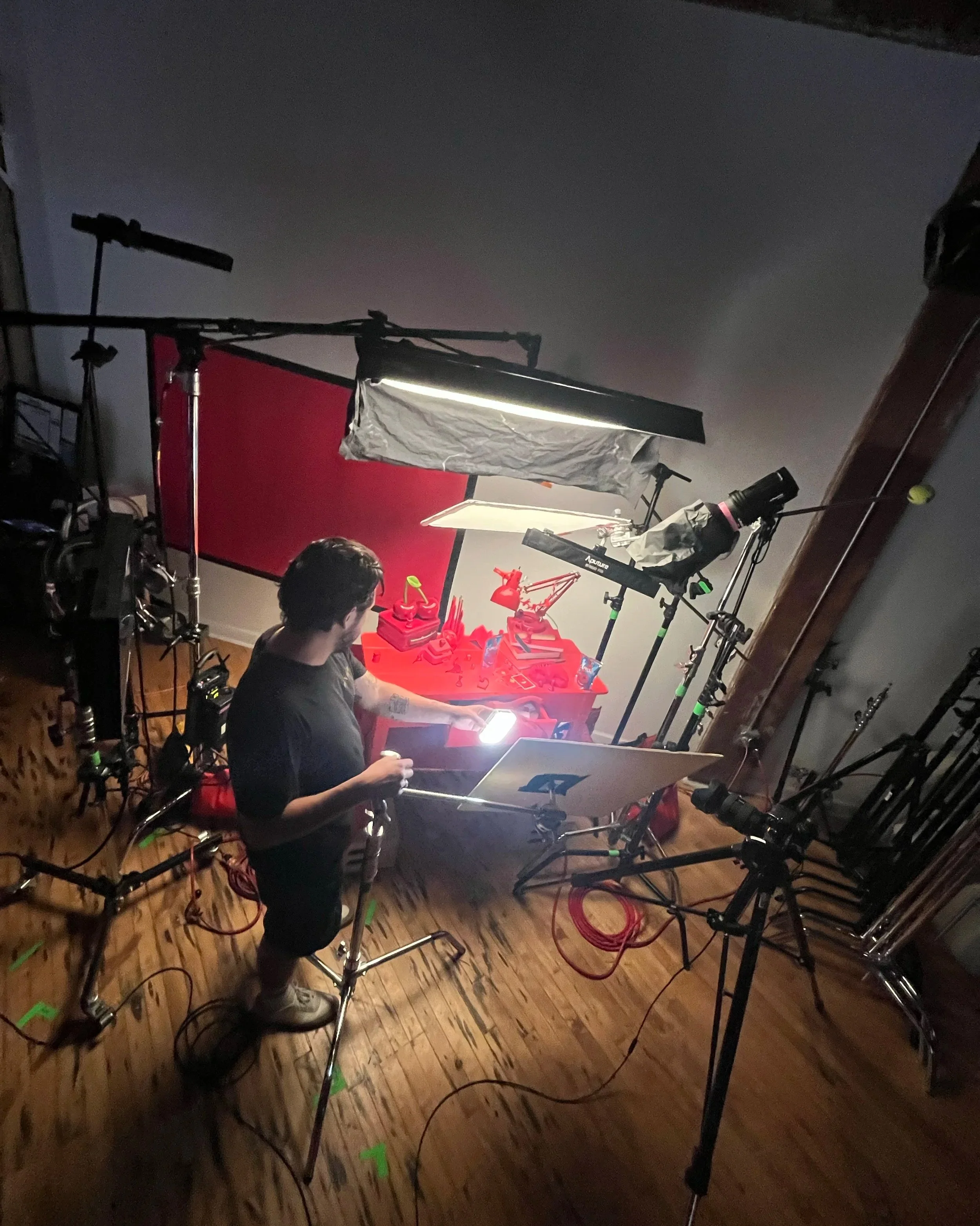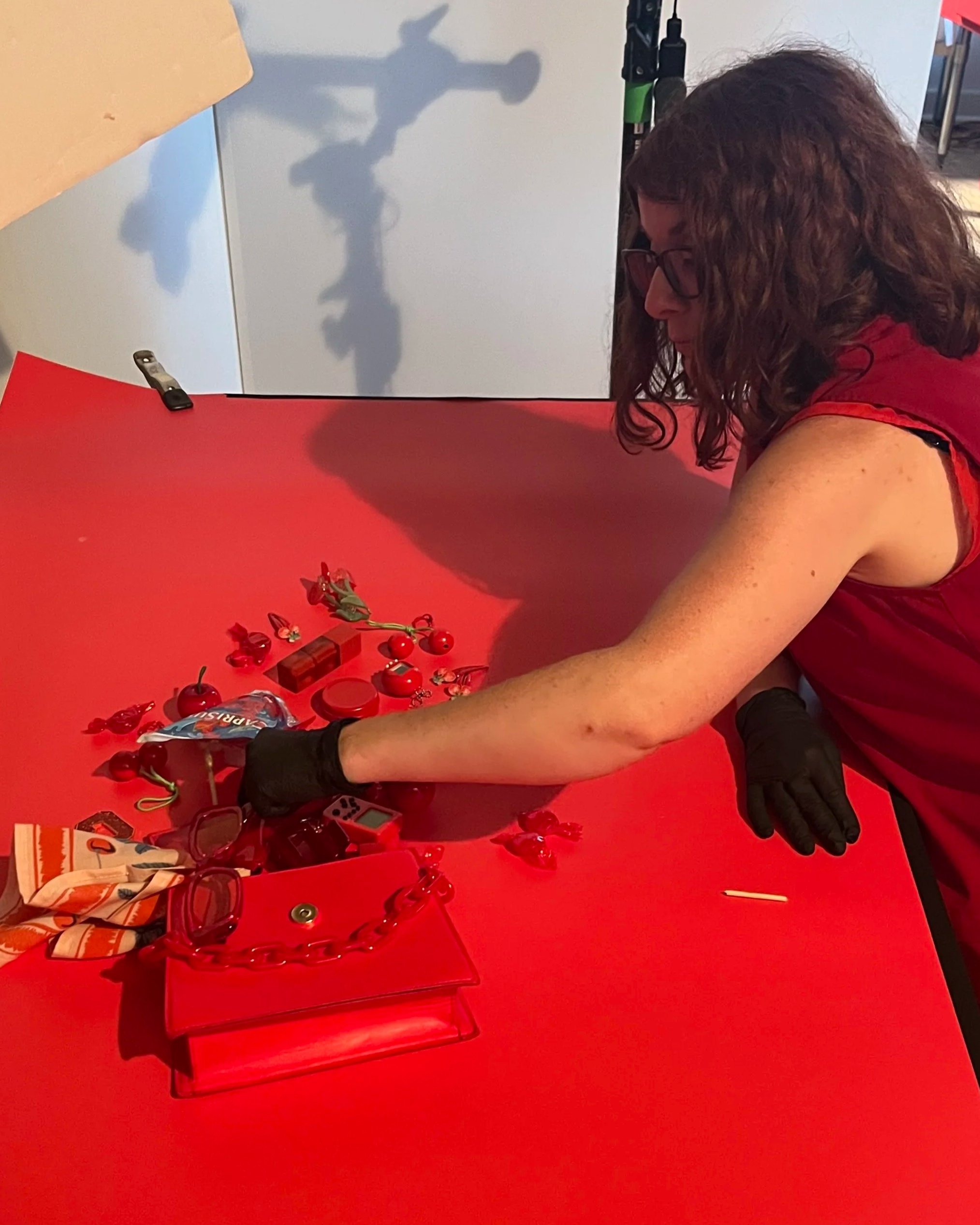 Each setup played with a different kind of chaos: a packed tabletop, a spilled bag, a floating hero moment. The through line was contrast, structured vs. messy, graphic vs. playful all tied together by that unmistakable cherry red.