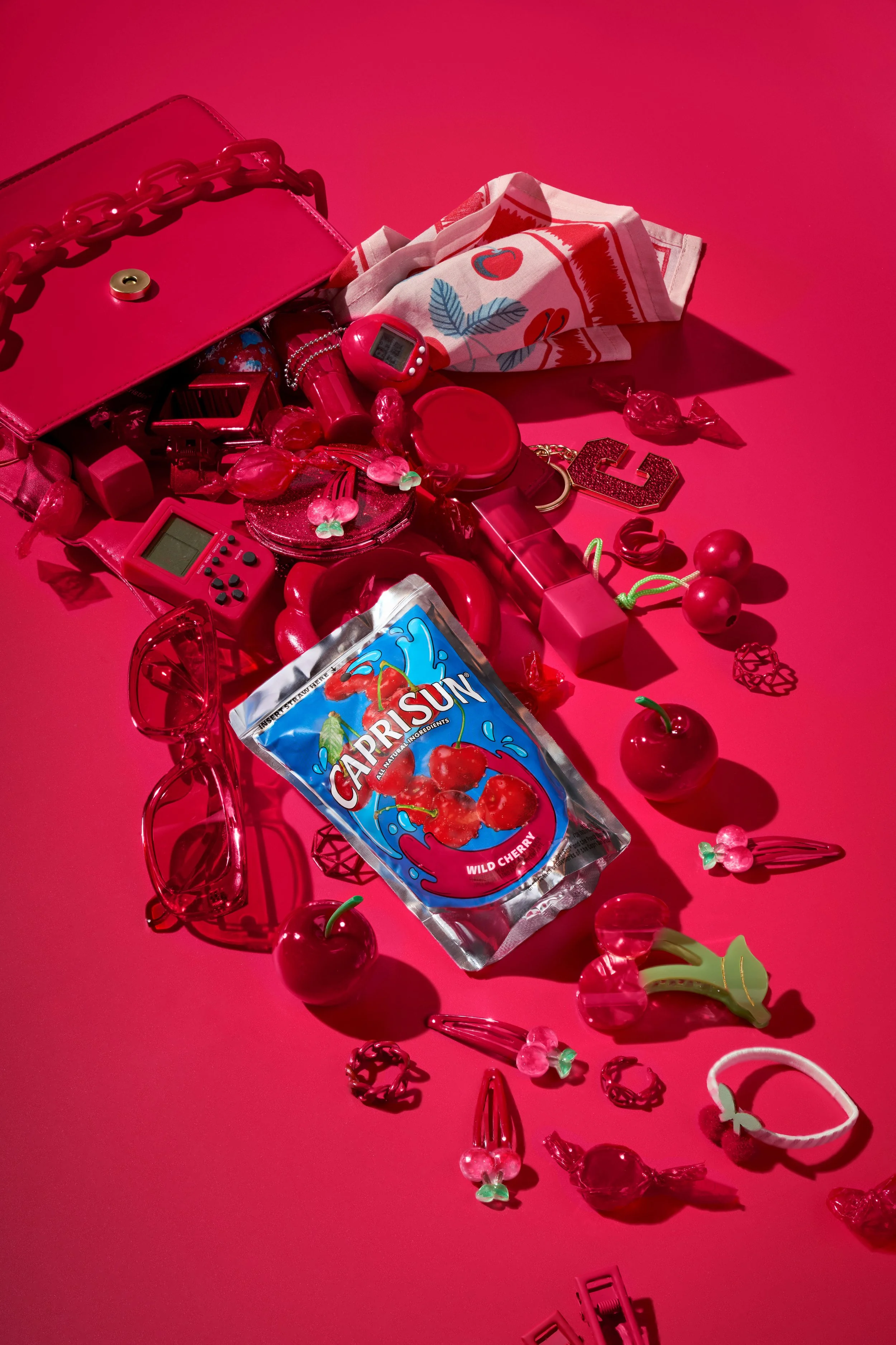 “Cherry Coded” leaned all the way in, color, concept, and composition. We built a fully saturated cherry red world where the Capri Sun Wild Cherry pouch was the only break in the system.